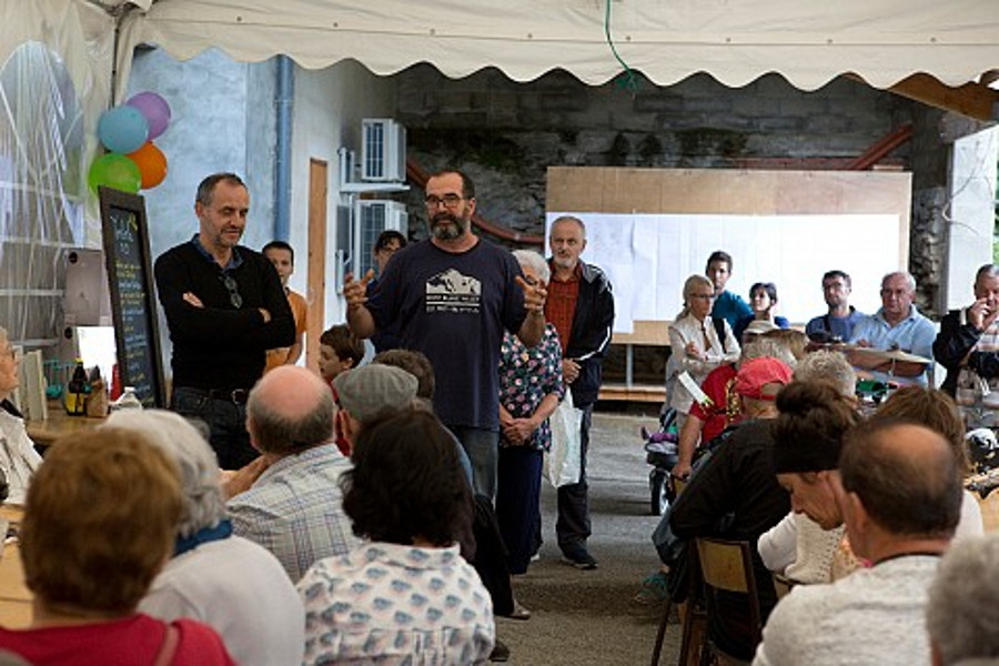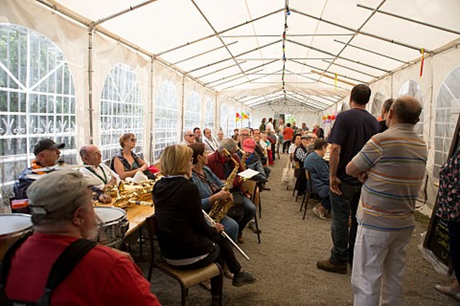 Cette année le repas était sous les Barnums du Préau. Monsieur Martorello, l'architecte qui a en charge les travaux de restauration est venu expliquer son diagnostique et les travaux nécessaires à la préservation de l'Eglise